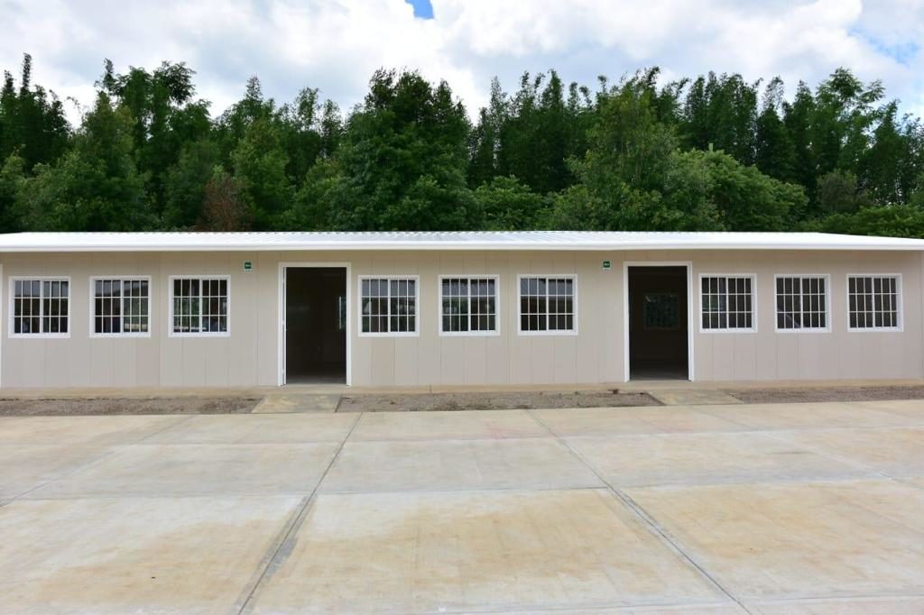 Consta de seis aulas didácticas, salón de usos múltiples, dos direcciones, patio cívico, malla perimetral, áreas de servicios sanitarios que incluyen bebedores e instalaciones para personas con discapacidad.
