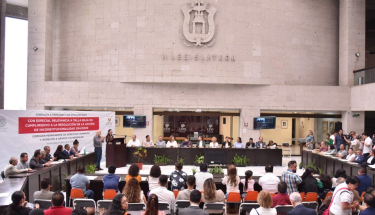 Con la participación de siete organizaciones de personas con discapacidad, incluidas Gente Pequeña o Talla Baja, la Comisión Permanente de Derechos Humanos y Atención a Grupos Vulnerables de este Congreso realizó la Consulta Pública sobre el Decreto 557 que reformó la Ley para la Integración de las Personas con Discapacidad del Estado, a fin de conocer propuestas e inquietudes de este sector social y en cumplimiento a la resolución de la Suprema Corte de Justicia de la Nación (SCJN) en la acción de inconstitucionalidad 204/2020.
