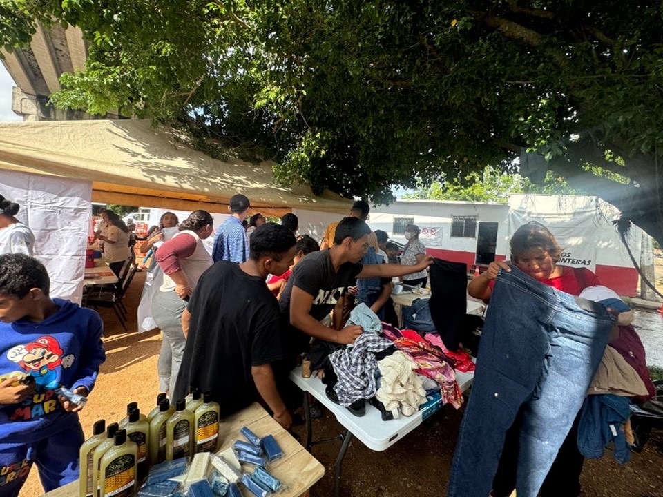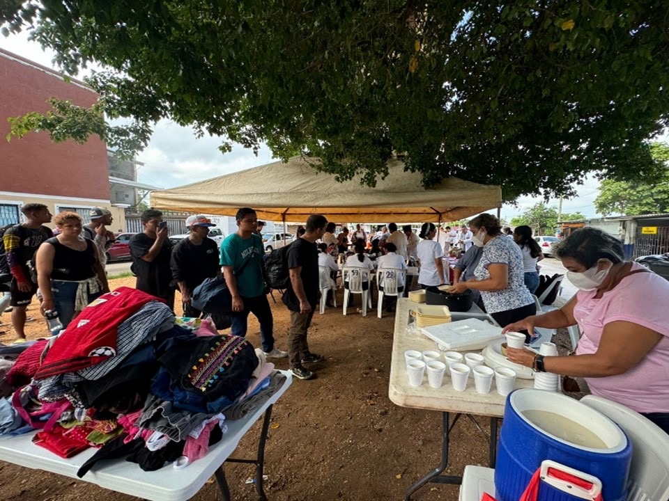 Además, se distribuyeron productos de higiene personal como jabones, cremas Goicochea y biberones, gracias al apoyo de Braskem Idesa. Se entregaron 150 platos de comida, ropa y calzado a los migrantes.