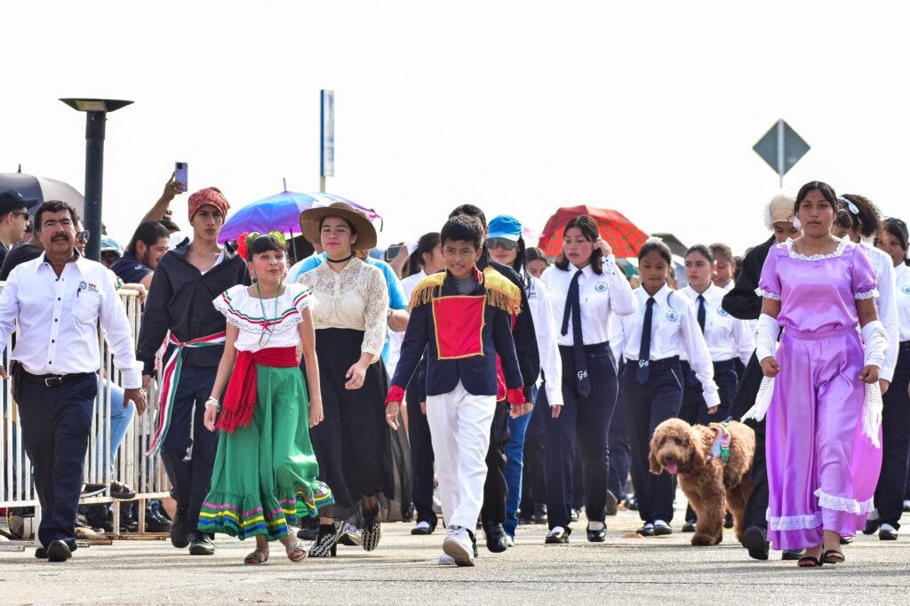 El desfile comenzó a las 08:00 horas en la avenida Vicente Guerrero y recorrió el Malecón Costero, con un acto cívico que incluyó el izamiento de la bandera y la entonación del Himno Nacional.