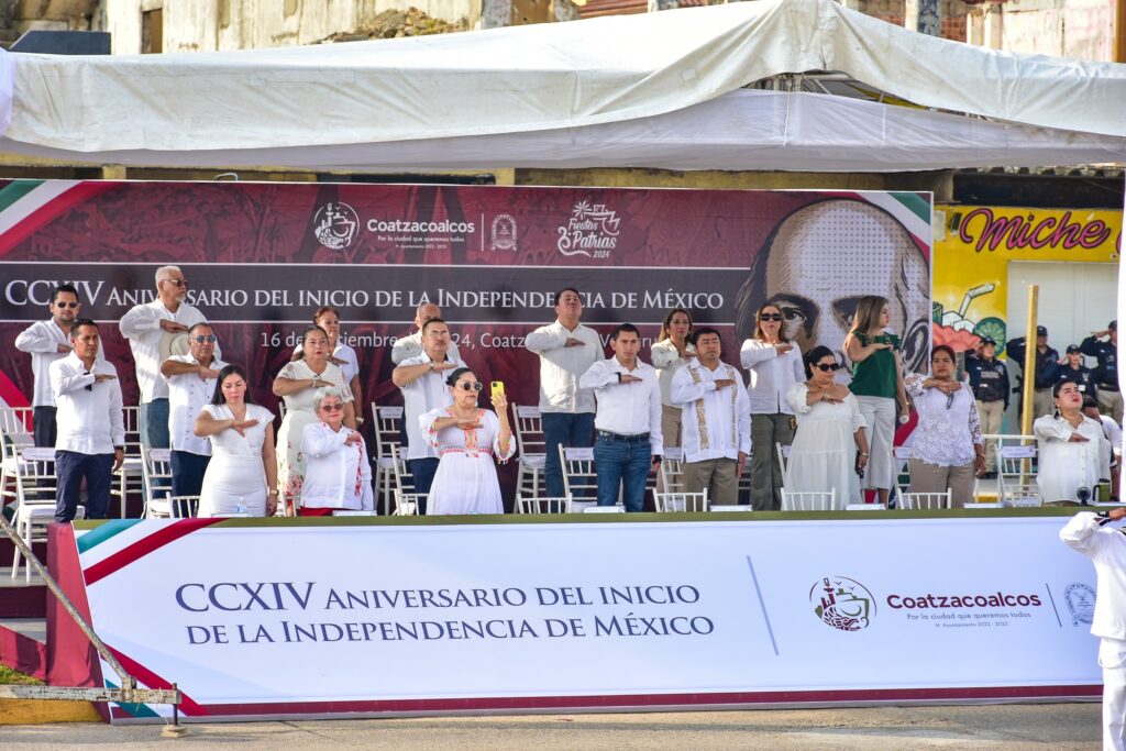 Entre las autoridades presentes destacaron el Comandante del Tercer Batallón de Infantería, Mauricio García Rivera; el Capitán de Fragata, Saúl Gutiérrez; y, en representación del Gobernador Cuitláhuac García Jiménez, Rocío Villafuerte Martínez. Así mismo, asistieron la Síndico Único, Ana Bertha Hernández Aguilar, la Delegada Regional de la SEV, Paola Cabrera Antonio, y todos los integrantes de la comuna edilicia de Coatzacoalcos.