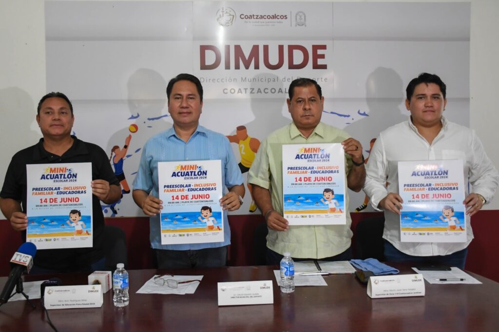 El Gobierno de Coatzacoalcos presentó oficialmente el próximo ‘Mini Acuatlón Escolar 2024’, un evento infantil e inclusivo que reunirá a niños de preescolar, padres de familia y docentes en una jornada de deporte, diversión y convivencia que se realizará el próximo viernes 14 de junio, a las 09:00 horas, en la playa a la altura de la Casa de la Cultura.