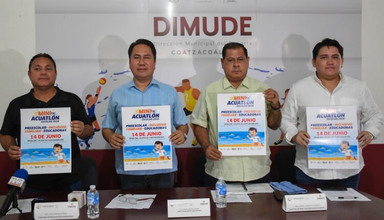 El Gobierno de Coatzacoalcos presentó oficialmente el próximo ‘Mini Acuatlón Escolar 2024’, un evento infantil e inclusivo que reunirá a niños de preescolar, padres de familia y docentes en una jornada de deporte, diversión y convivencia que se realizará el próximo viernes 14 de junio, a las 09:00 horas, en la playa a la altura de la Casa de la Cultura.