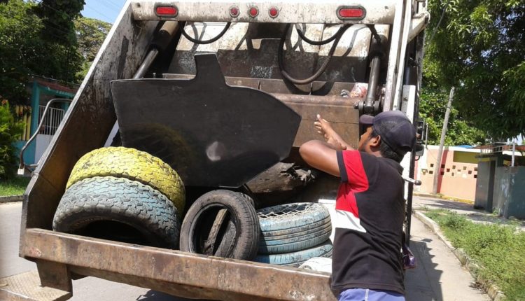 Al intensificar los trabajos en el combate del mosco transmisor del Dengue, Zika y Chikungunya, así como los criaderos de estos, durante este mes el Gobierno Municipal ha recolectado 62 toneladas de cacharros y 102 llantas, en 31 colonias del municipio.