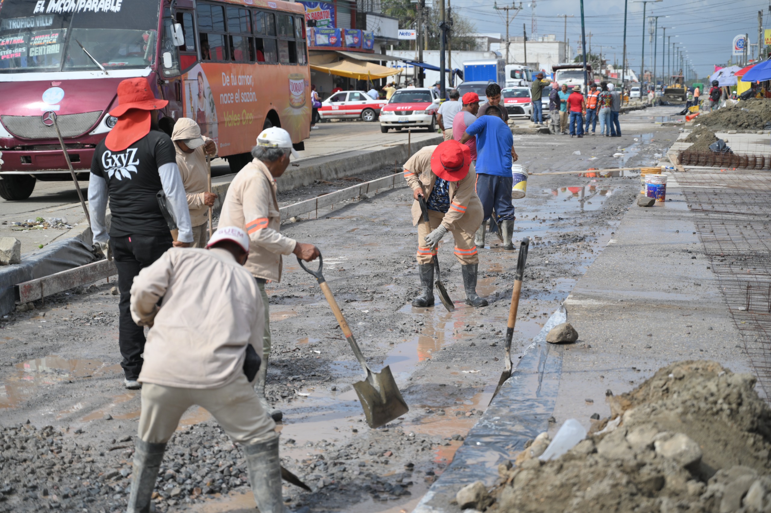 La finalidad es ofrecer una carpeta de rodamiento renovada y segura para el tránsito de vehicular en esta zona con gran movimiento comercial, por lo que previo al colado, personal de Infraestructura Urbana llevó a cabo el saneamiento del terreno, la colocación de membrana plástica y la aplicación de base hidráulica con grava triturada.