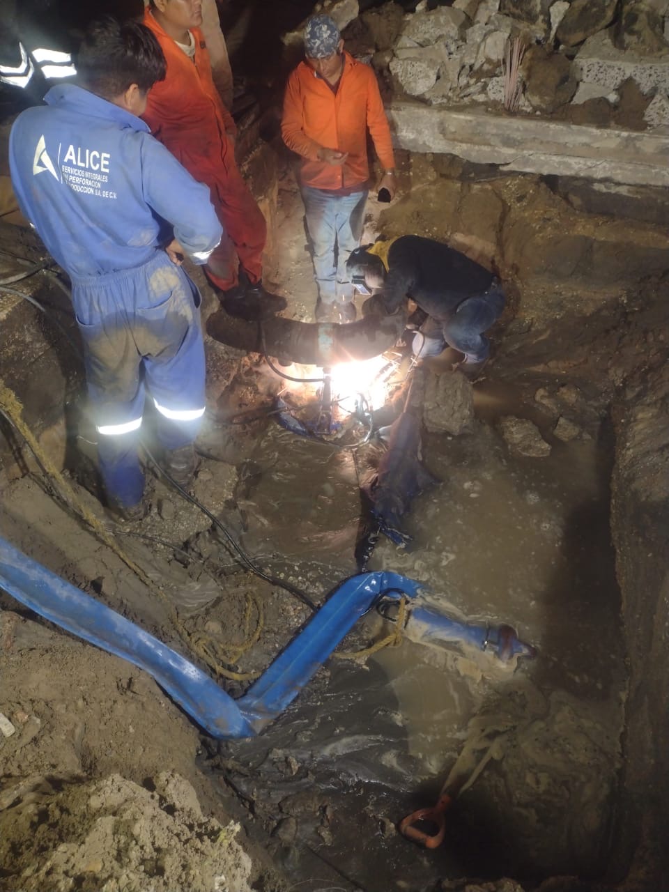 Las labores de soldadura se extendieron por varias horas, hasta finalmente concluir durante la madrugada de este día, con el único objetivo de restablecer el suministro lo antes posible.