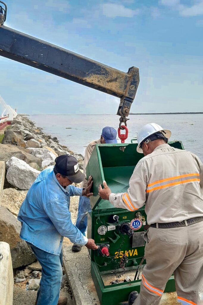 Esta semana, una cuadrilla de trabajadores de Alumbrado Público llevó a cabo la instalación de un nuevo transformador, el cual suministrará energía eléctrica a más de 30 lámparas distribuidas a lo largo del paseo de las escolleras.