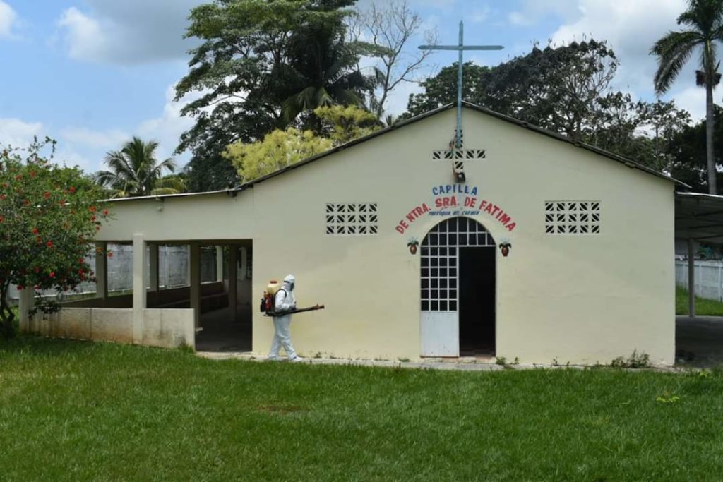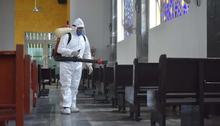 Sanitizan templos, iglesias y capillas en Agua Dulce