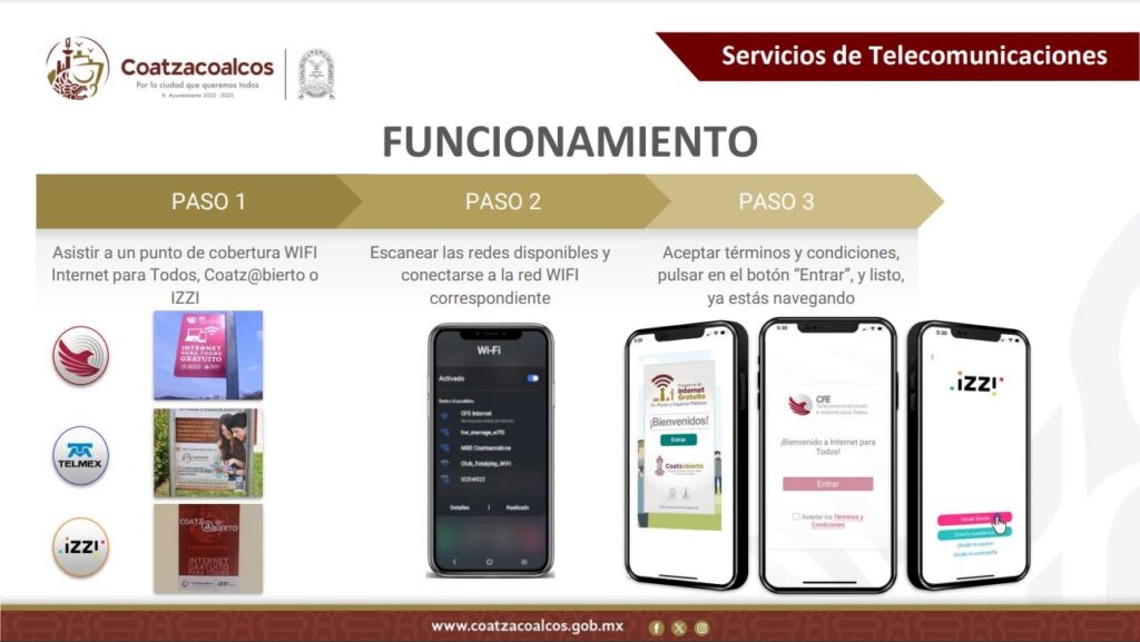 Coatzacoalcos amplía la conectividad digital gratuita beneficiando a 127 mil 961 habitantes con la instalación de 79 puntos de internet ubicados en diversos sitios públicos de la ciudad.