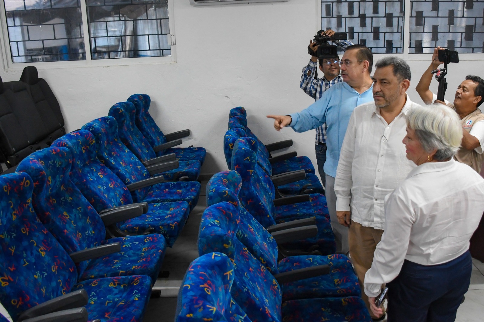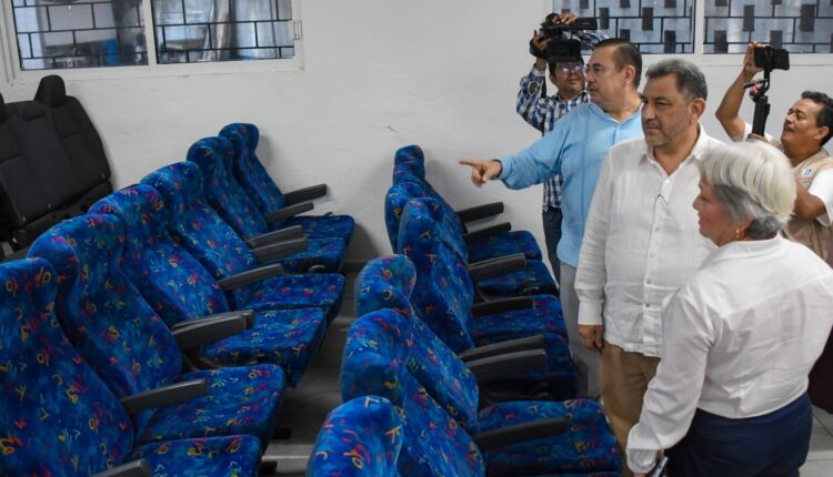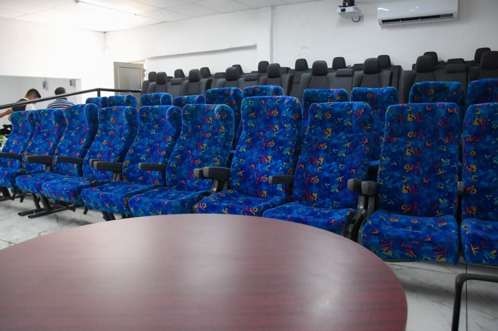 El auditorio está totalmente climatizado, cuenta con proyector y asientos cómodos reciclados, algunos donados por Fundación ADO y otros, provenientes de las nuevas unidades que fueron presentadas este lunes. De la misma manera, fue renovado el sanitario.
