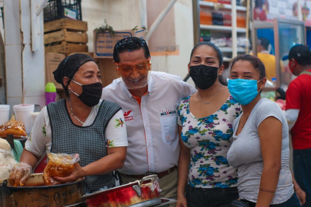 Con el objetivo de compartir sus propuestas de campaña con los locatarios y visitantes del mercado, “Beto Mijangos” caminó y visitó local por local para saludar a todas ls personas que se encontraban a su paso.