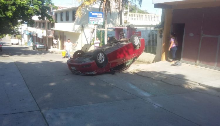 La mañana de este domingo un vehículo particular volcó, en la avenida Sebatián Lerdo entre Guerrero y Allende del centro de la ciudad.