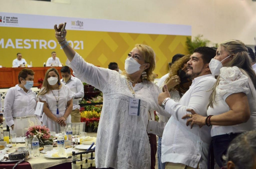 En tanto, el gobernador Cuitláhuac García Jiménez explicó que a causa de la pandemia es que hoy se festejó al magisterio veracruzano, a quien reconoció que pese a las condiciones difíciles que se viven, no abandonaron a sus alumnas y alumnos.