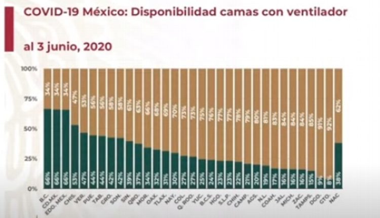 El director de epidemiología, José Luis Alomía presentó una tabla en la que se observa la distribución de camas en cada una de las entidades federativas.