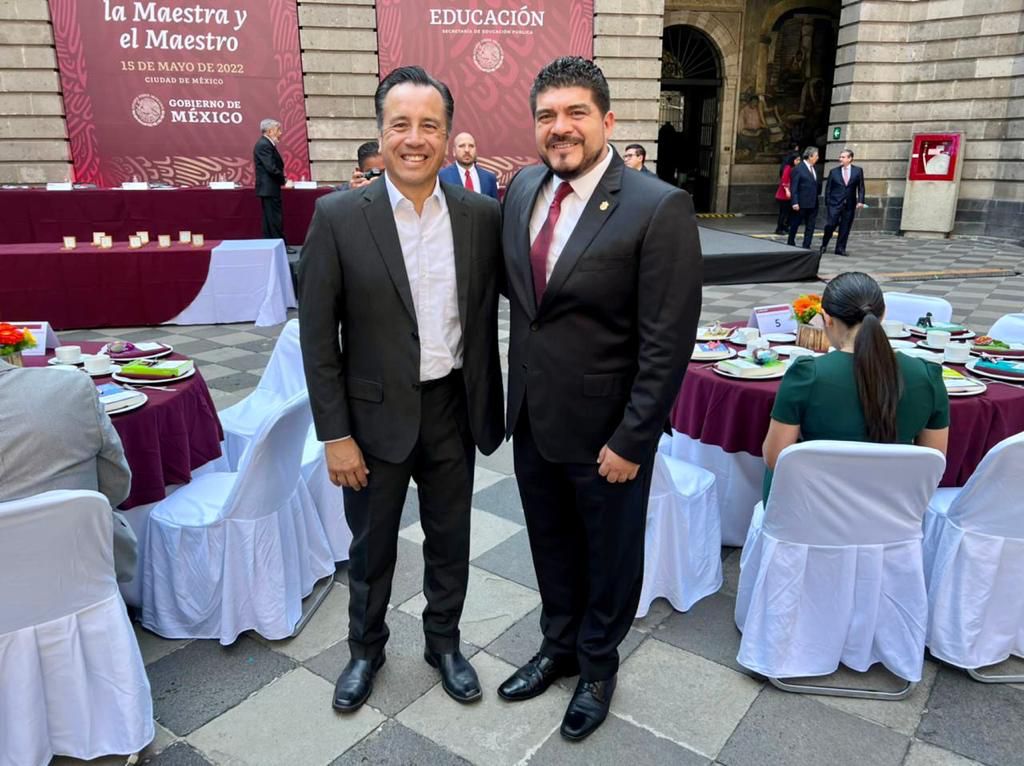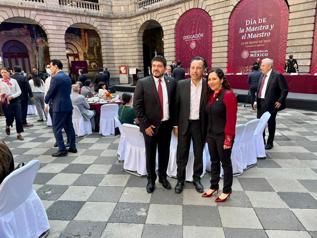 Ciudad de México, a 15 de mayo de 2022.- En un ambiente completamente de fiesta y camaradería, este domingo, con motivo del “Día del Maestro”, el presidente Andrés Manuel López Obrador convocó a todas las autoridades educativas del país para celebrar esta importante fecha, evento al que asistió el titular de la Secretaría de Educación en Veracruz, Zenyazen Escobar García, en compañía de su gran aliado y jefe del ejecutivo estatal, el gobernador Cuitláhuac García Jiménez.