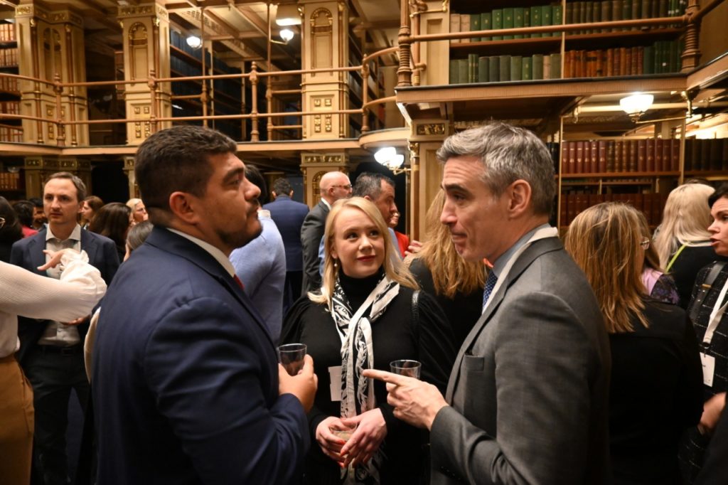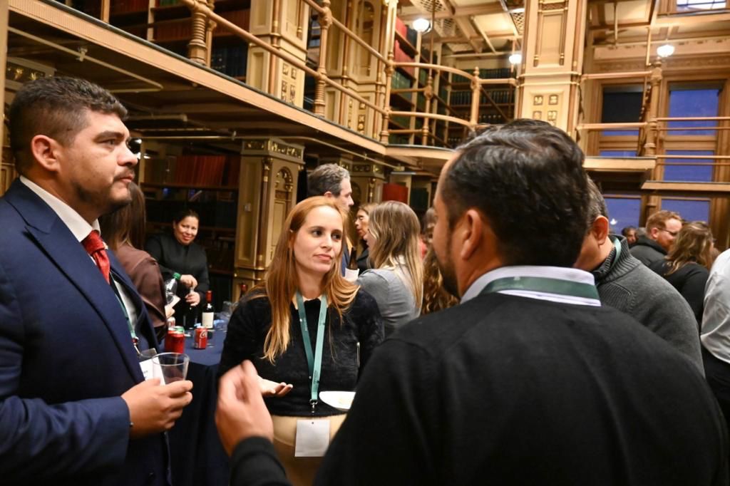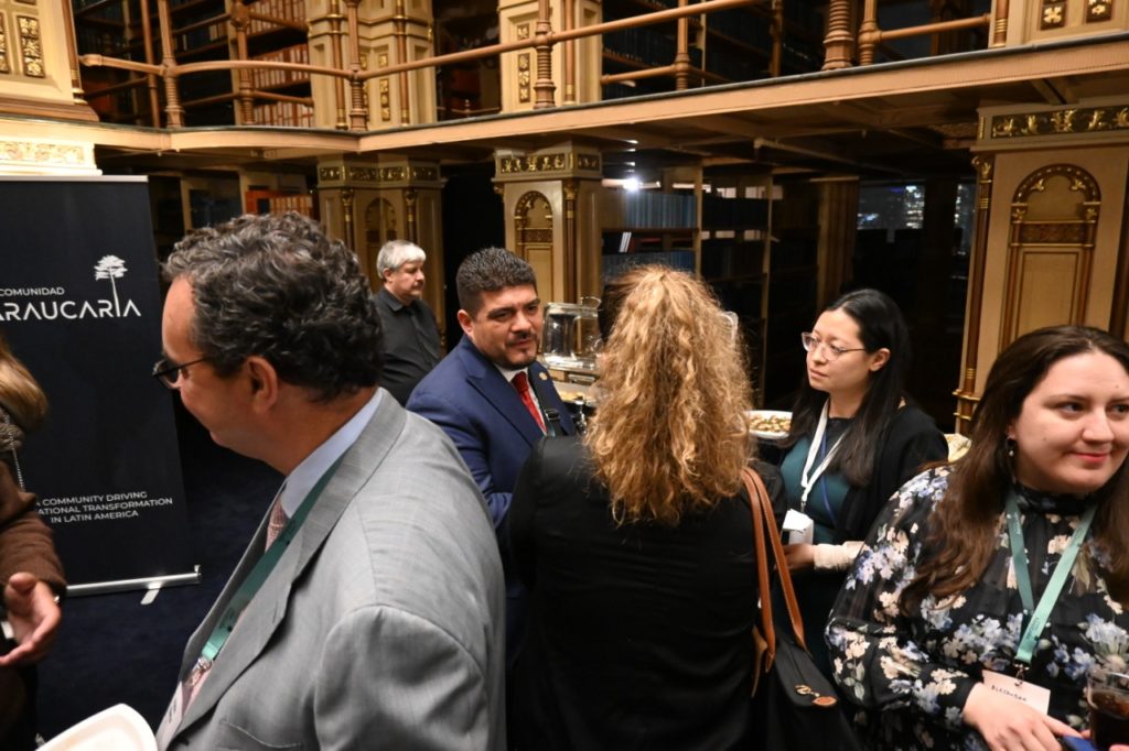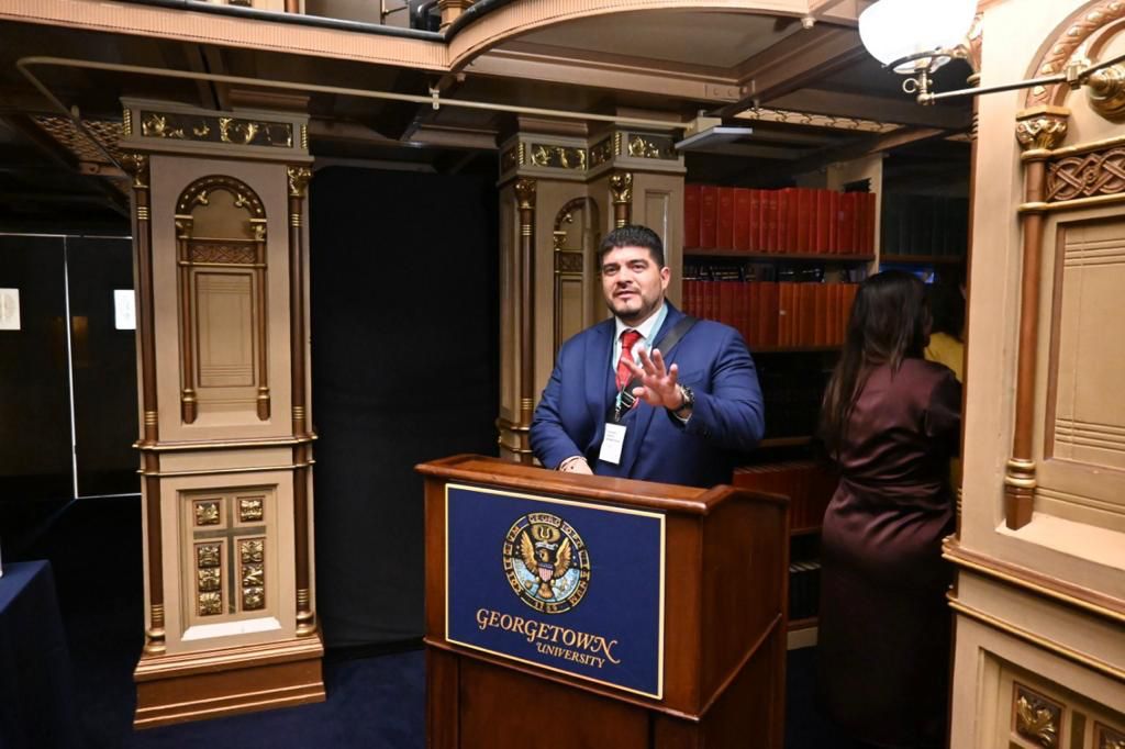 En torno a la agenda del día, el funcionario participó en mesas de trabajo y compartió los resultados que se han tenido en Veracruz, como parte de la transformación que se vive en México para concluir con una convivencia en la Riggs Library de la casa de estudios.