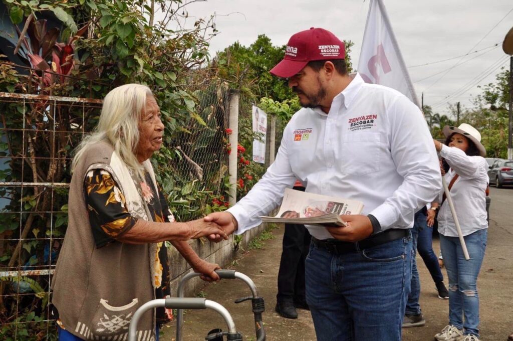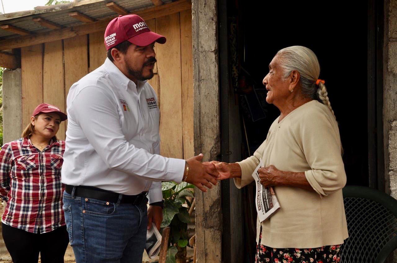 Durante su recorrido por la localidad de Zapoapan, fue recibido por comerciantes locales y el agente municipal Erasto Jaque de la Cruz, ahí el candidato escuchó atentamente sus propuestas y agradeció el respaldo recibido para el proyecto de continuidad que representa Morena.
