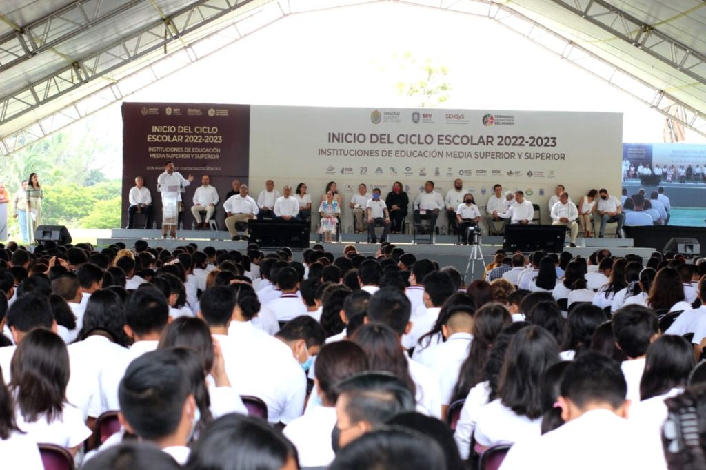 En el marco del inicio del ciclo escolar 2022-2023 en Educación Media Superior y Superior, el secretario de Educación de Veracruz, Zenyazen Escobar García, a nombre del Gobierno del Estado, anunció el inicio de los trabajos de una Escuela Normal Pública en Coatzacoalcos.
