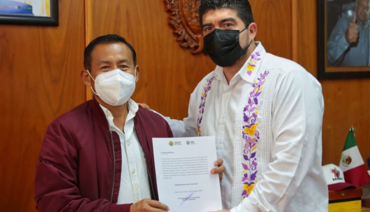 El secretario de Educación, Zenyazen Escobar García, entregó al maestro Onésimo Pérez Ramos su nombramiento como nuevo delegado regional de Tuxpan, quien será presentado este miércoles ante los trabajadores de la delegación.