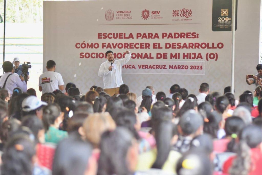 Al participar en el taller Escuela para Padres: ¿Cómo favorecer el desarrollo socioemocional de mi hija(o)?, el secretario de Educación de Veracruz, Zenyazen Escobar García, resaltó la importancia de la salud emocional en madres y padres de familia, porque se reflejará en la actitud de sus hijas e hijos.