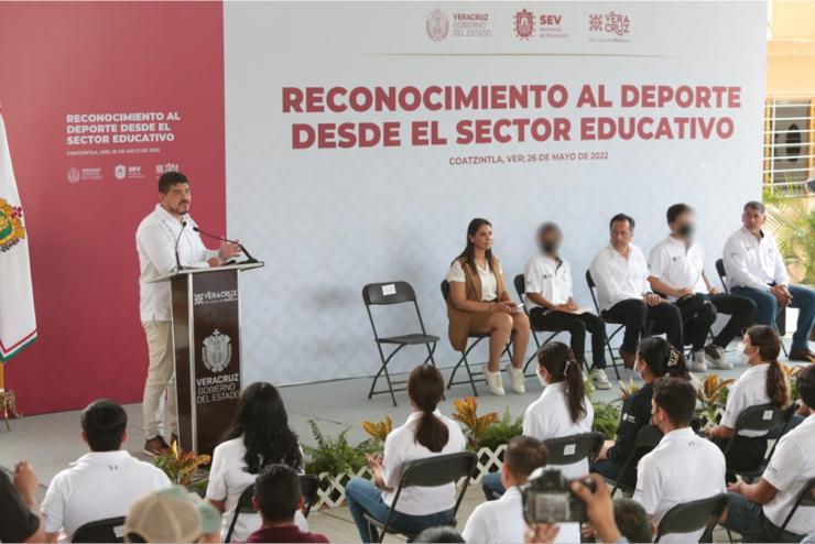 Acompañado por la oficial mayor de la Secretaría de Educación de Veracruz (SEV), Ariadna Selene Aguilar Amaya, el secretario reconoció la labor de los entrenadores, de las madres y los padres de familia, pues al fomentar la constancia dan valores a niñas, niños y jóvenes. “El deporte lo que te da es que no te rindas a la primera; en la vida hay muchos tropiezos y nos tenemos que levantar”, expresó.