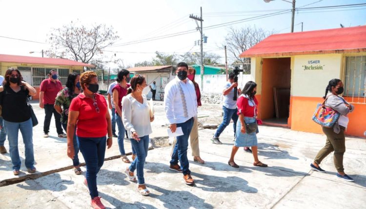El secretario de Educación de Veracruz, Zenyazen Escobar García, estuvo en los municipios de Veracruz y Boca del Río, con el fin de constatar los trabajos de mantenimiento en planteles del nivel básico que fueron vandalizados.